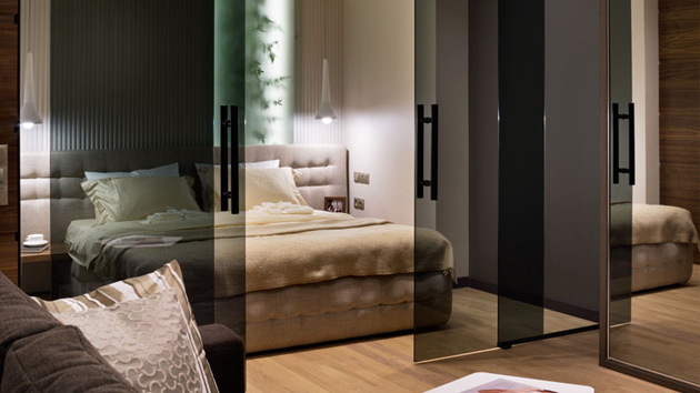 Interior Design Tiny Stylish Apartment Featuring a Bedroom with Glass Doors When designing a small area, it is important that every aspect of it will avoid clutter and will make it look more v...